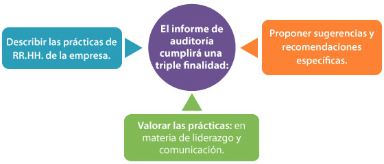 La auditoría de RRHH comienza con la identificación de los objetivos que persigue la organización y a través del informe de diagnóstico se definen conjuntamente (consultora y empresa) las acciones más convenientes y oportunas para lograr los resultados deseados.